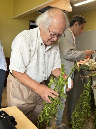 ▲ 赤澤先生は現在81歳。長年、仕事で枝豆研究に従事され、退職後もだだちゃ豆の育成に尽力してこられました。2000年から2023年まで時間をかけて、新品種のだだちゃ豆の育成に成功。「赤澤2号」「赤澤3号」の名がつくこの品種は、大莢で甘みが強く、9月中旬以降に収穫できることから産地でも注目されています。