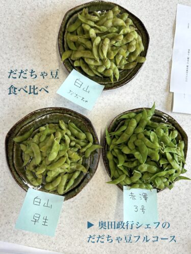 白山だだちゃ、白山早生、赤澤3号のだだちゃ豆3種食べ比べの中で、私は赤澤3号が好きでした(早生白山と白山だだちゃは、収穫時期に冷凍保存されたもの)。