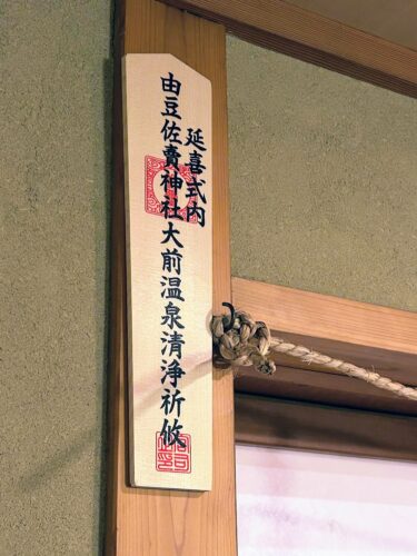 由豆左賈神社(ゆずさめじんじゃ)のおふだ。この神社は創建が紀元650年、古くから崇敬されてきた湯田川温泉の鎮護社なのだそう。