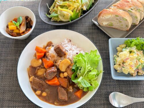 (写真は前回の豆カレーとポテサラ、ほか)