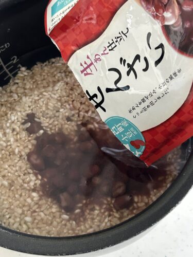 ぜんざいを混ぜて玄米ごはんを炊くだけ。塩を2つまみくらい加えました。これは、もうちょっと改善が必要ですね。