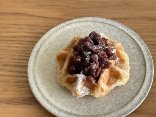 おやつ感覚のプレーンに、あんこをのせて粉糖までふりかけて‥‥ 甘くしすぎた?