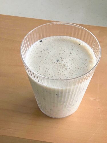 蒸し黒豆を使って、マルヤナギさんのレシピを再現。豆乳は入山とうふさんの釜炊き豆乳にしました。黒豆の味が濃いから、スムージーにしても豆の味がわかります。